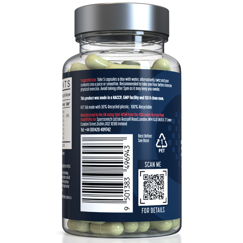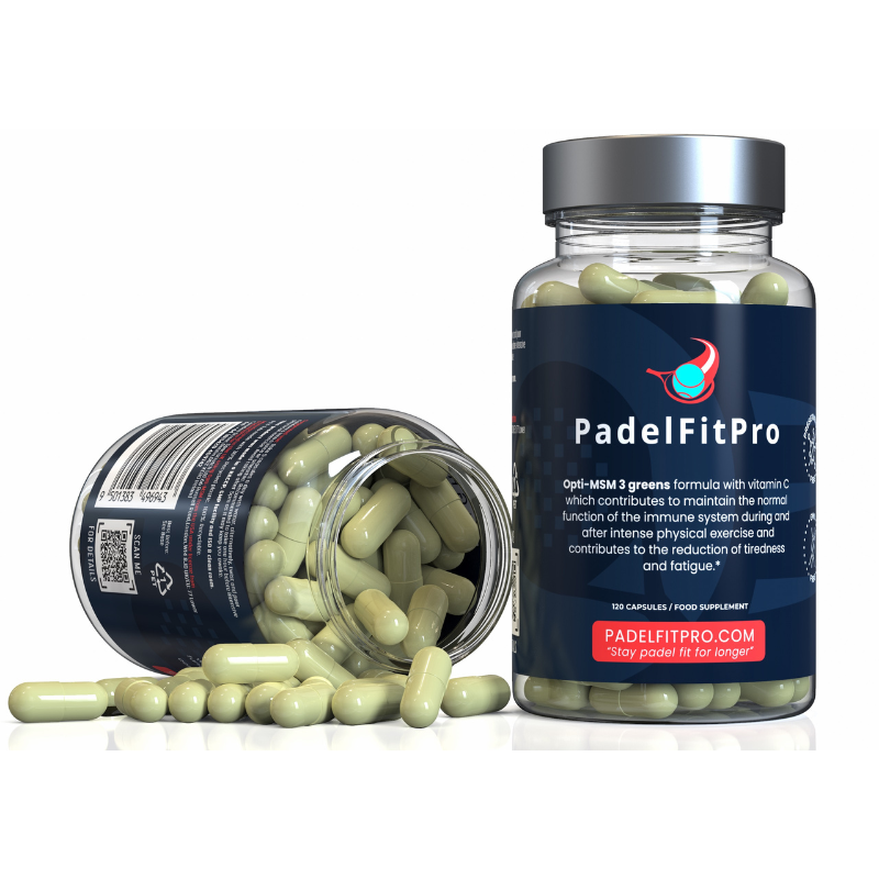 Our advanced OptiMSM 3 green formula is designed to support your muscles and joints, ensuring they remain lubricated, flexible, and primed for intense tournament play. Whether you're a competitive player like me, or a weekend warrior, PadelFitPro is your secret weapon for elasticating muscles, preventing injuries, and achieving faster recovery times.